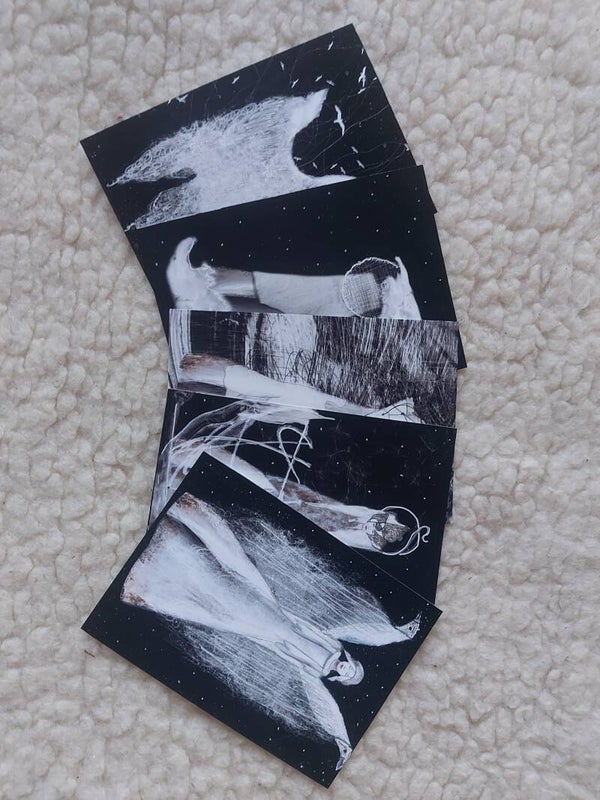 Unieke serie. Geprint op premium matt papier 210 gr. Diep zwart. Set van 5 bijzondere kaarten